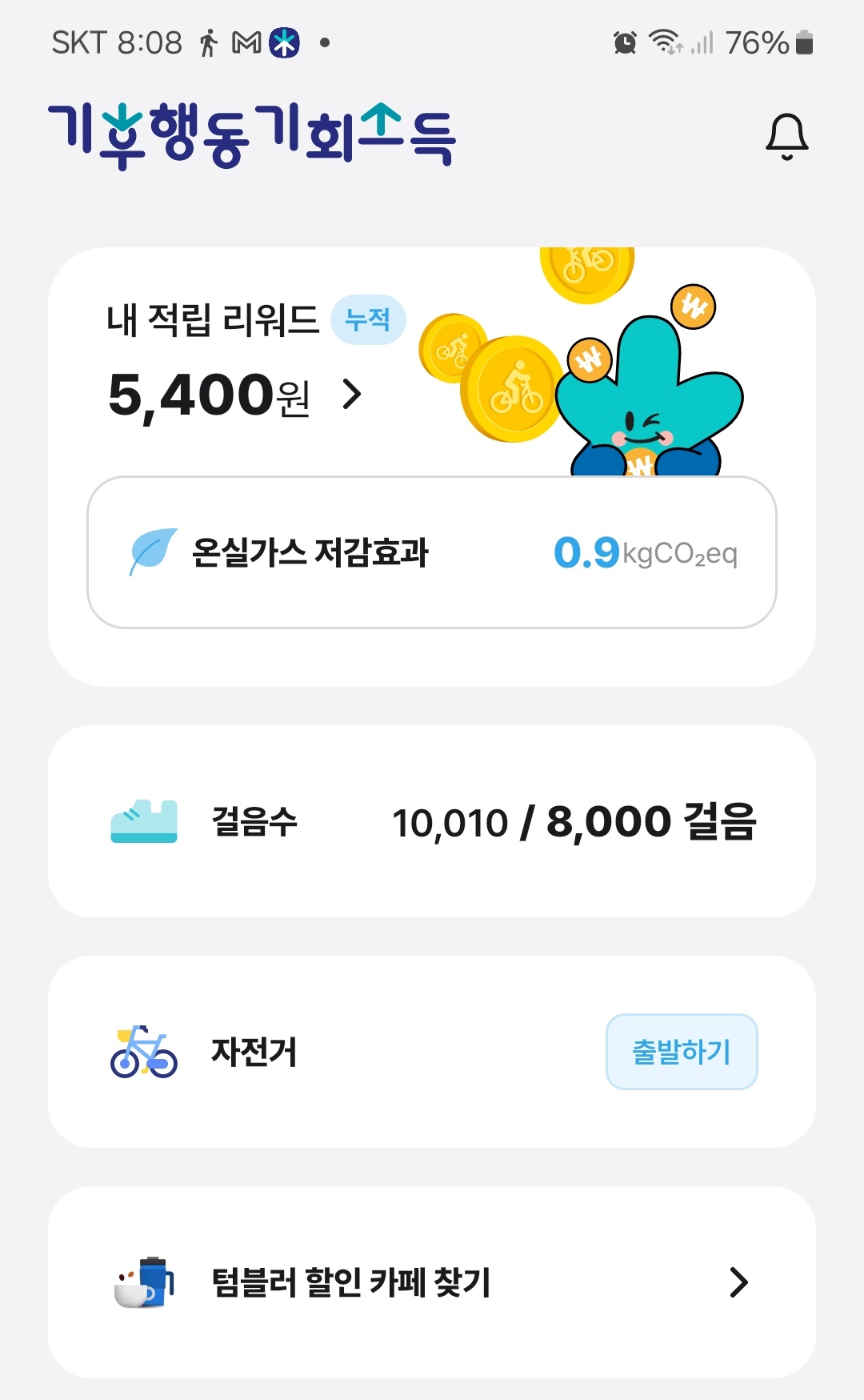 - 자전거: 매일 5km 이상 자전거를 타고 앱에 기록하면 월 1만 5천 원
