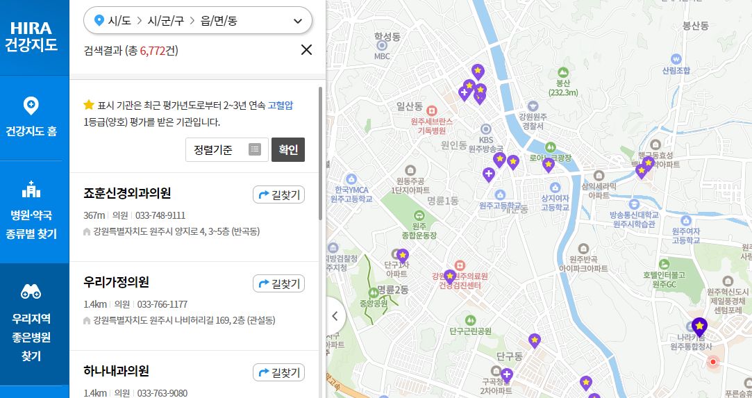 내 주변 좋은 병원 찾기, 심평원 "우리 지역 좋은 병원 찾기" 서비스