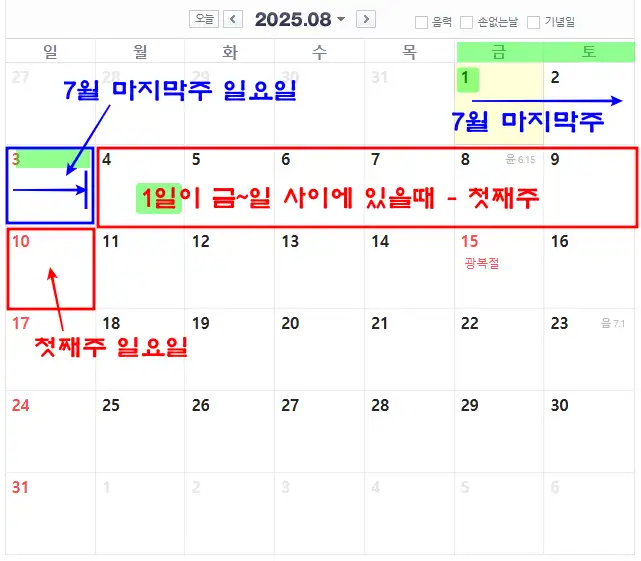 매월 첫째 주의 기준은? 한주의 시작일 바로 알기