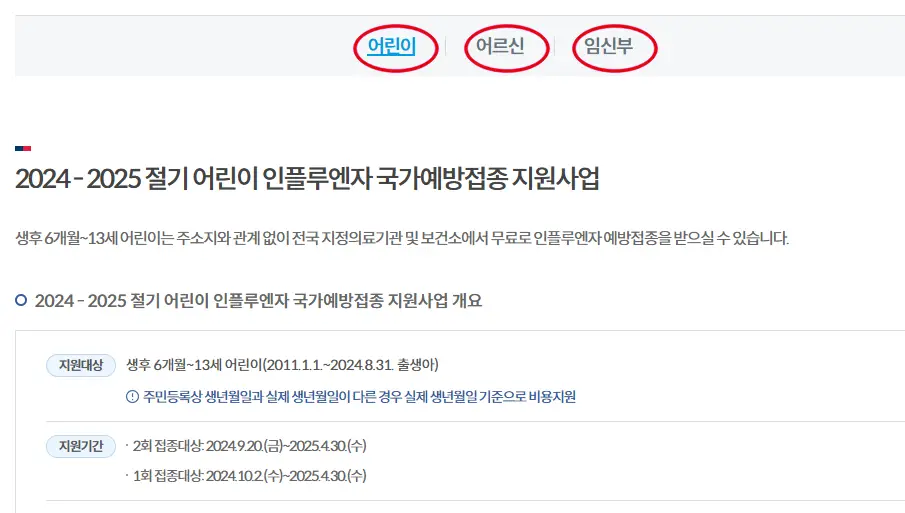 무료 백신접종 대상자