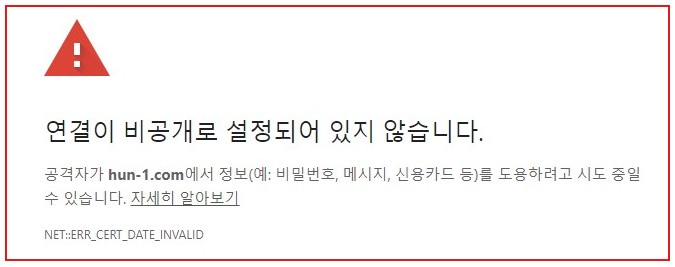 보안 접속 인증서의 만료기간이 지나버렸습니다.