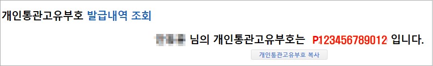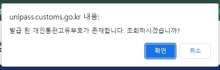 개인통관고유부호가 있어서 조회만 가능합니다.발급 페이지로 이동 할 수가 없습니다.