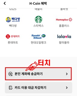 전환된 H코인(H-coin)을 입금 계좌로 송금하는 방법