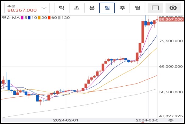 비트코인 현물 ETF의 승인은 제도화된 환경에서의 안정적인 투자 수단으로 비트코인이 인식되게 했습니다. 이로써 투자자들은 비트코인을 기존의 자산 다양화에 활용할 수 있게 되었으며, 이는 비트코인의 가치 상승을 촉진하는 이유 중 하나로 추정 됩니다.